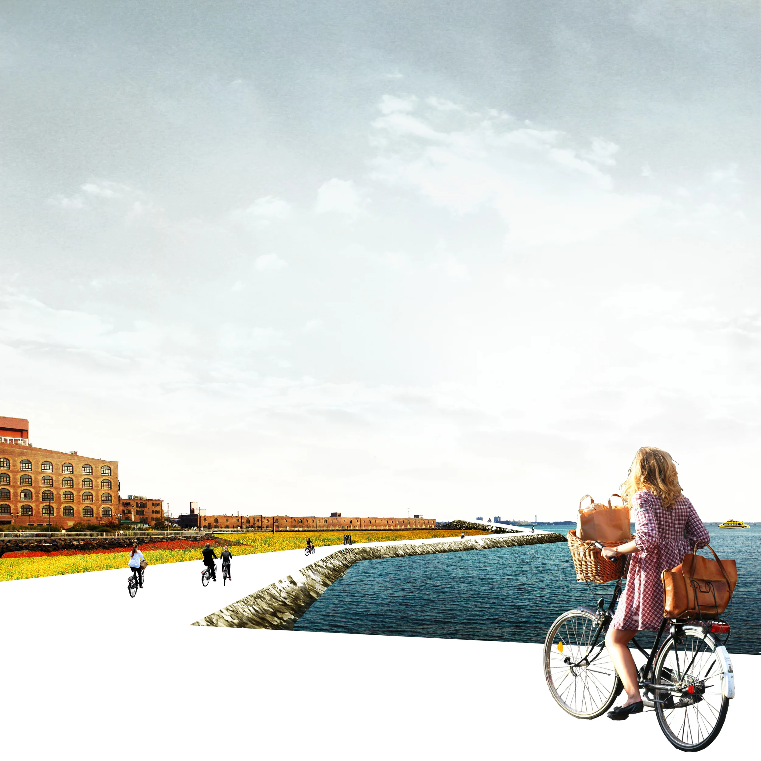 A coastal barrier rises to surround Red Hook as protection from rising water levels while creating new bicycle and pedestrian pathways punctuated by a network of small building housing a variety of public programs. Attempting to couple both active and passive infrastructures, this design highlights the latent potential of overlaying onto the impending and pragmatic infrastructural needs of the city, public spaces and amenities that can redefine our experience of daily urban life.